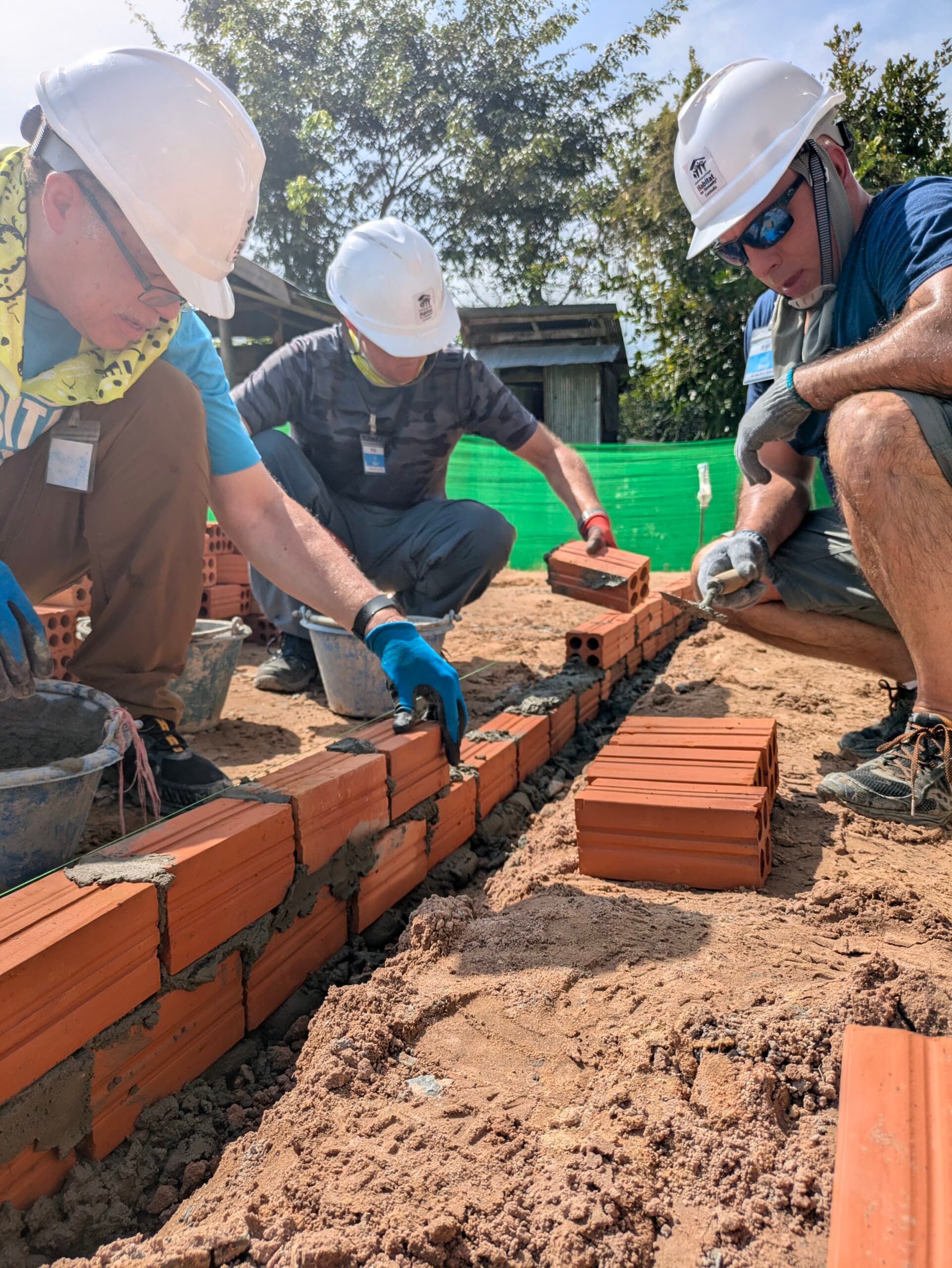 For the build week, Habitat Charlotte staff and volunteers worked daily to construct a home for a local family. Given that Cambodia experiences a monsoon season from May to October, housing must be built durably and resistant to flooding, as flooding is typical during this season. Kevin McCall, Deconstruction Assistant at Habitat Charlotte Region, shared his experience building: “I primarily worked on brick laying and filling for most of the workdays. The house was constructed using a pier and curtain method. The roof and structural corners were installed prior to our arrival. We then built the exterior and interior walls, which were made of Lego-shaped bricks reinforced with rebar. I helped mix and move the large amount of concrete and grout that was used to construct the floors.” This type of housing provides a strong foundation and protection against the elements for the family that calls it home.