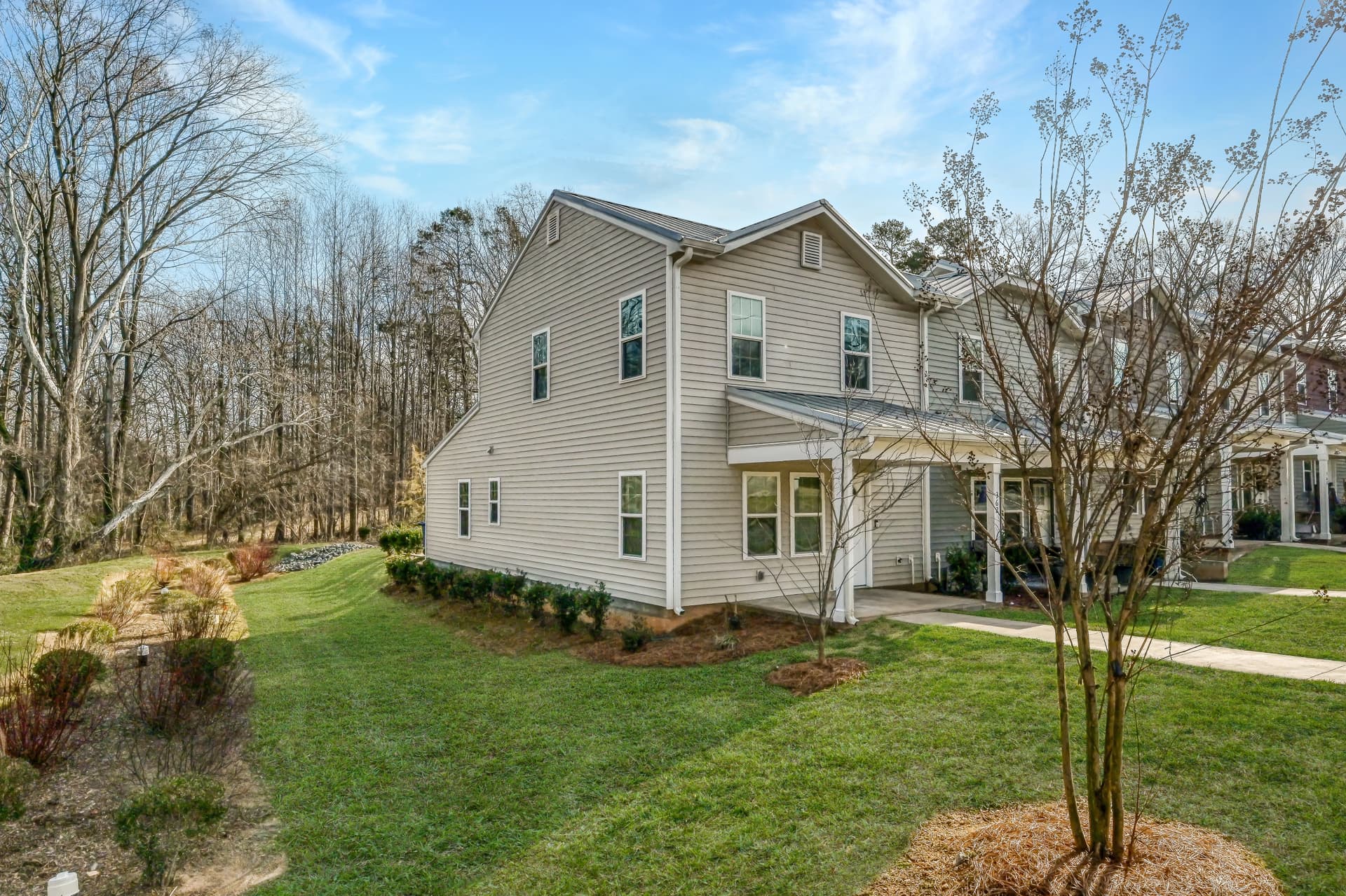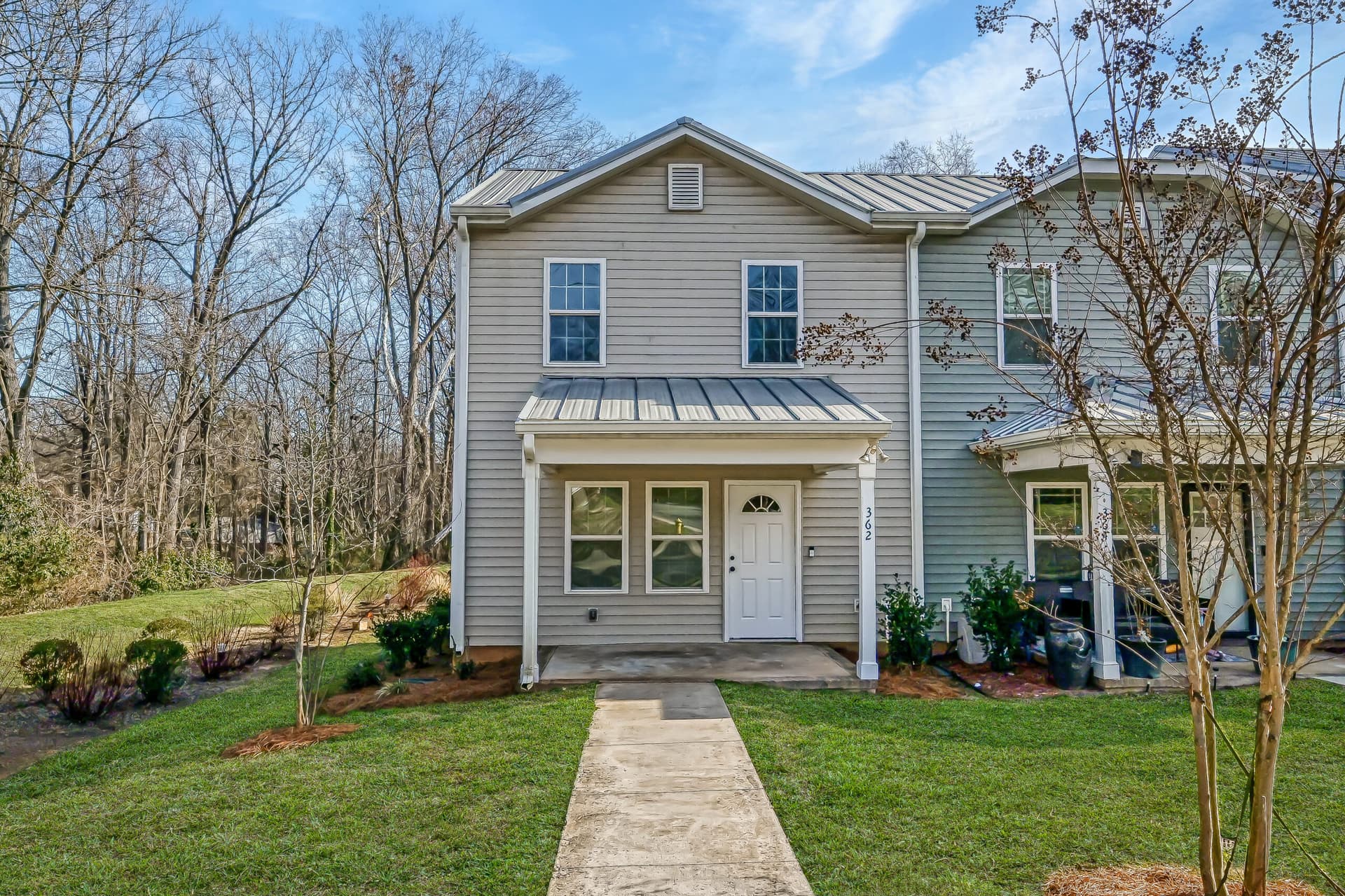 362 E Mills Ave is a charming end-unit townhome set among mature trees with a private parking lot just steps from the back door, offering a peaceful, low-maintenance retreat in the heart of Mooresville.