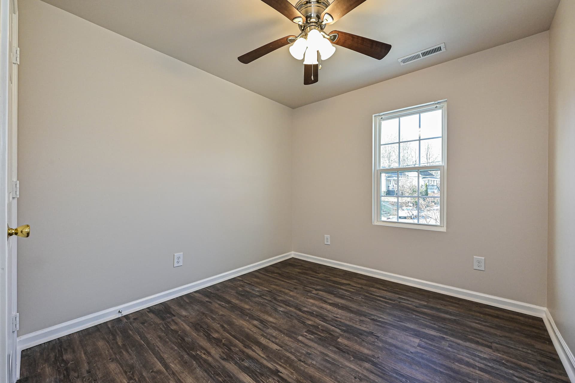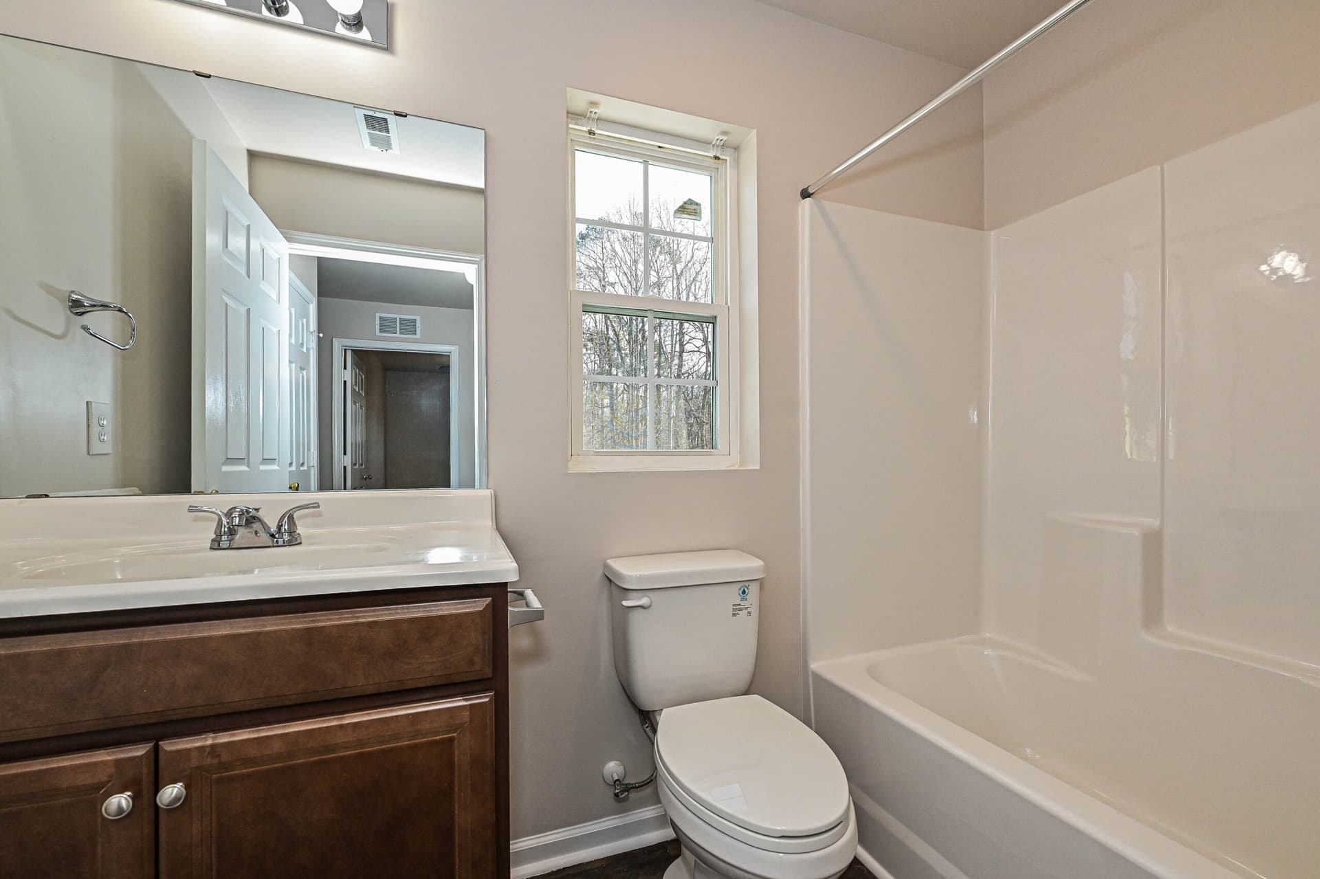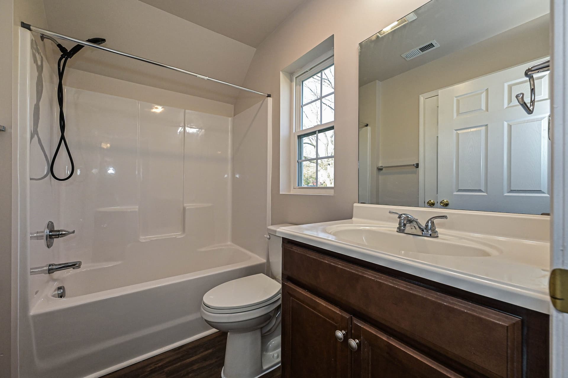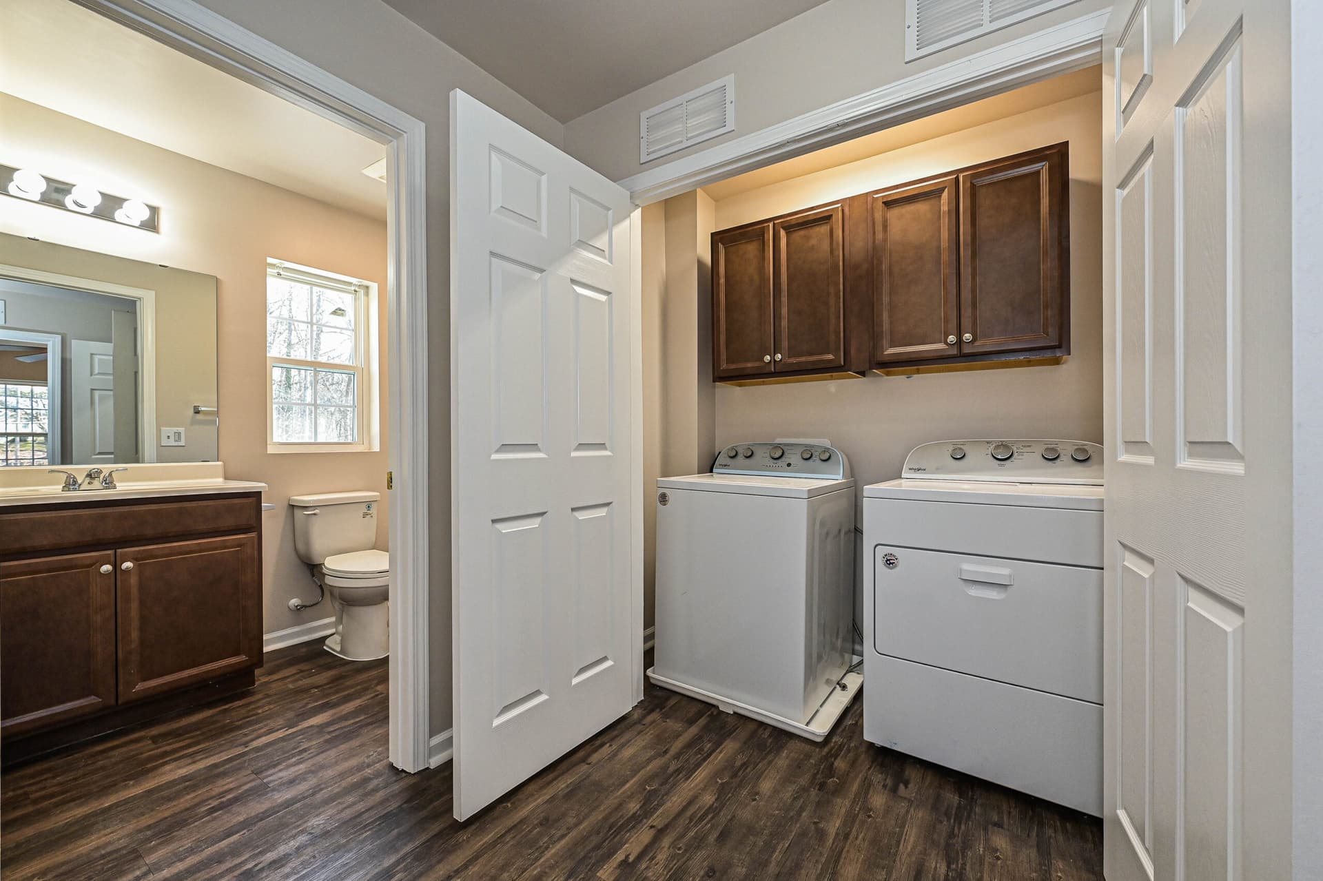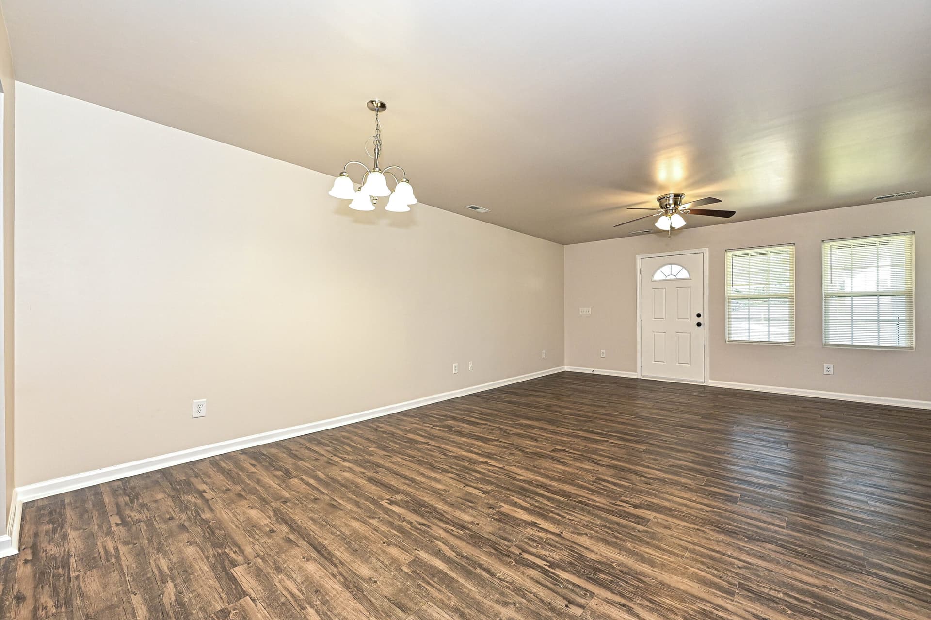 Inside, the home features a bright, open layout with hard surface vinyl flooring throughout, a kitchen with new stainless-steel appliances, and rich dark brown cabinetry that adds warmth and depth to the space.