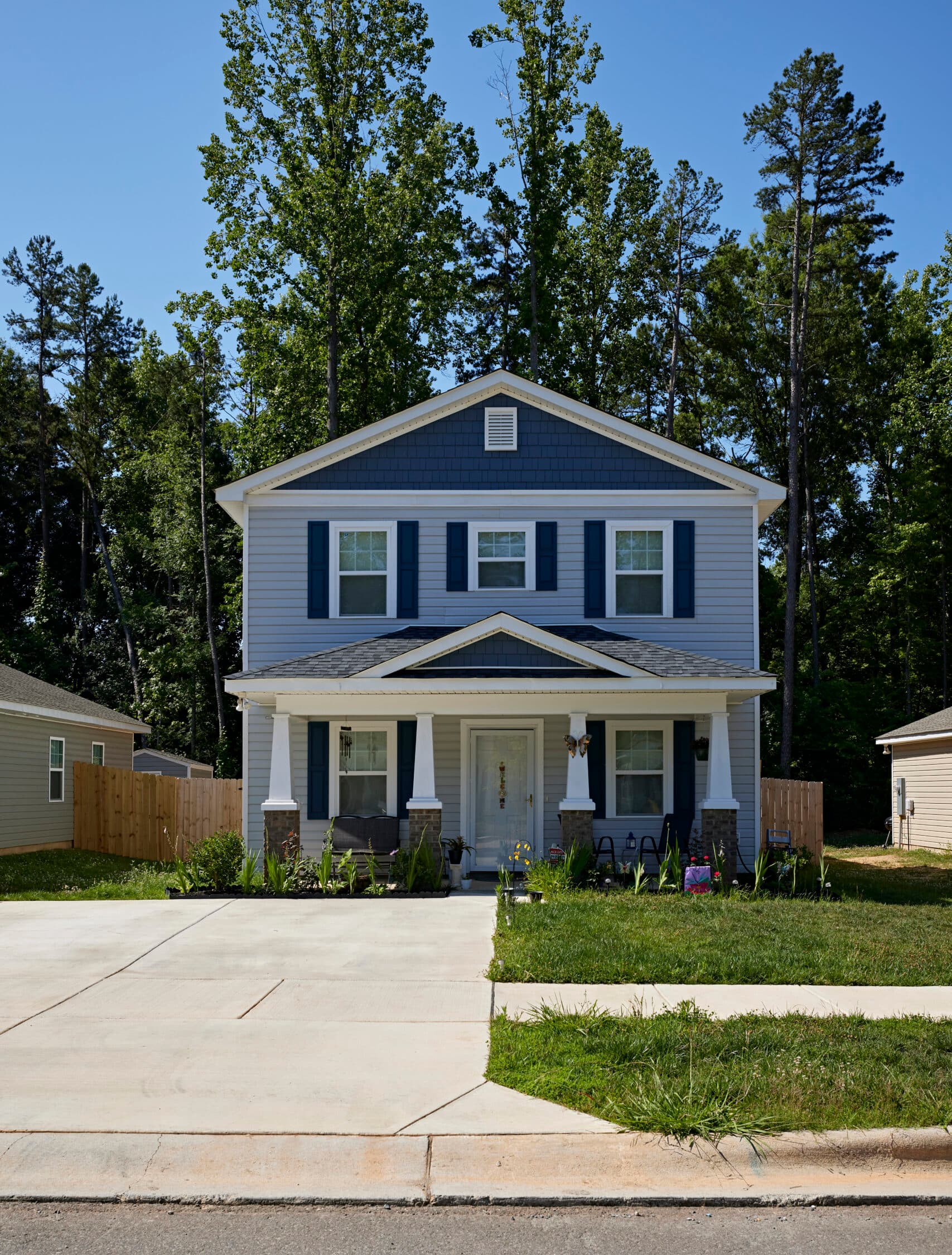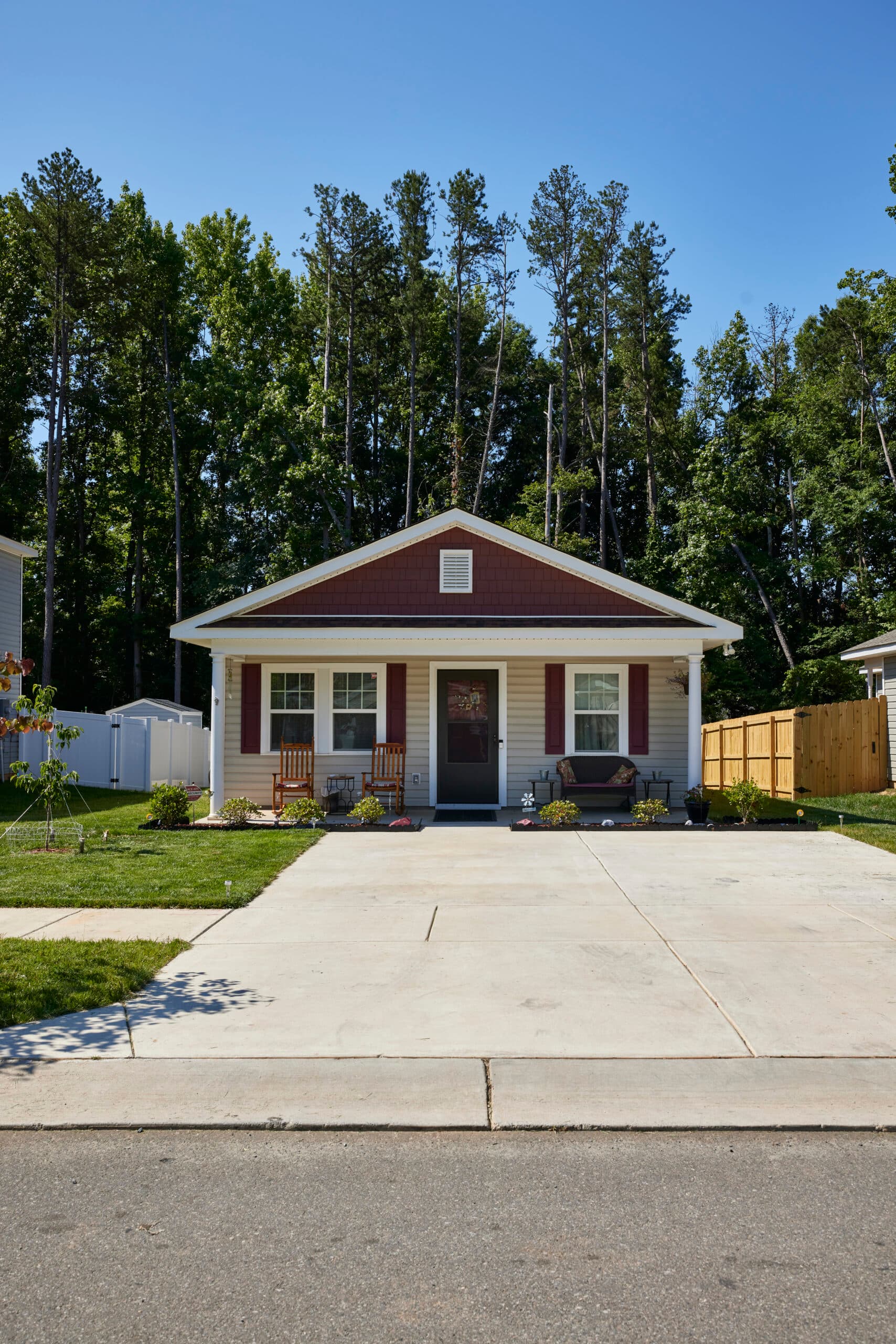 With 21 homes, Red Vest Way marked a major milestone in our mission to provide affordable homeownership opportunities. The neighborhood’s name celebrates this project’s largest financial supporter and long-term partner, Lowe’s. The iconic red vest worn by Lowe’s associates became a symbol of partnership and generosity, as countless Lowe’s employees not only funded the development through a multi-year, $1.1 million Charlotte Impact Project investment, but also volunteered over 600 hours of their time and skills to help build it.